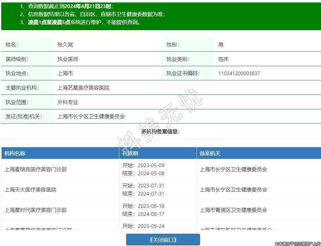 發(fā)證(批準)機關(guān):上海市長寧區(qū)衛(wèi)生健康委員會