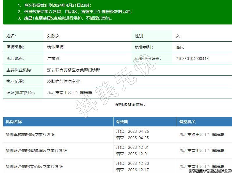 主要執(zhí)業(yè)機(jī)構(gòu):深圳聯(lián)合麗格醫(yī)療美容門診部