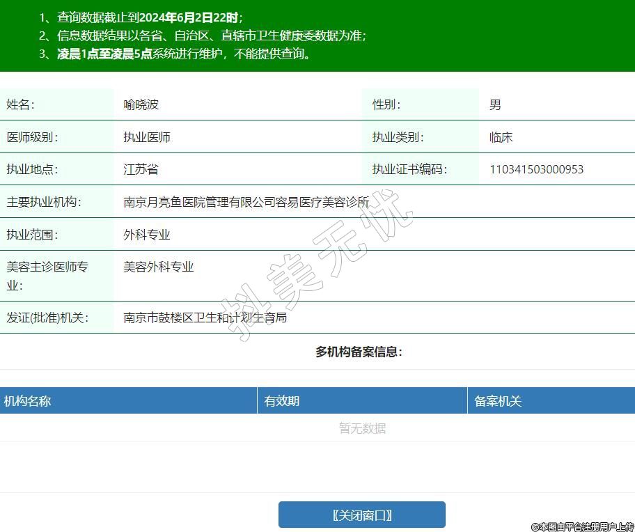 主要執(zhí)業(yè)機(jī)構(gòu):南京月亮魚醫(yī)院管理有限公司容易醫(yī)療美容診所