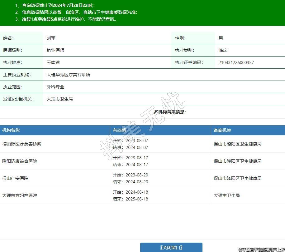 主要執(zhí)業(yè)機構:大理華秀醫(yī)療美容診所