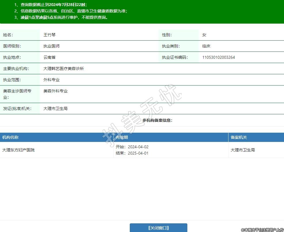 主要執(zhí)業(yè)機構(gòu):大理韓藝醫(yī)療美容診所