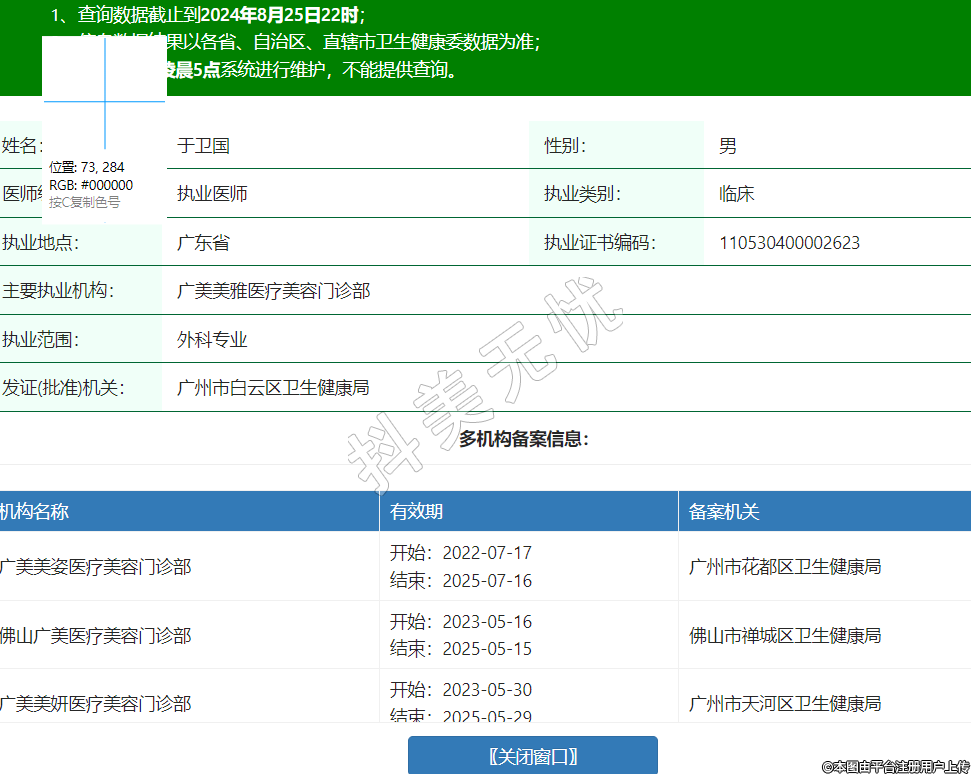 主要執(zhí)業(yè)機(jī)構(gòu):廣美美雅醫(yī)療美容門(mén)診部