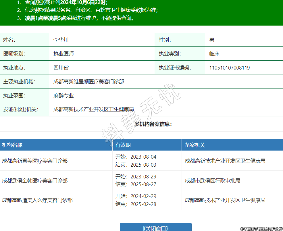 主要執(zhí)業(yè)機(jī)構(gòu):成都高新維星顏醫(yī)療美容門診部