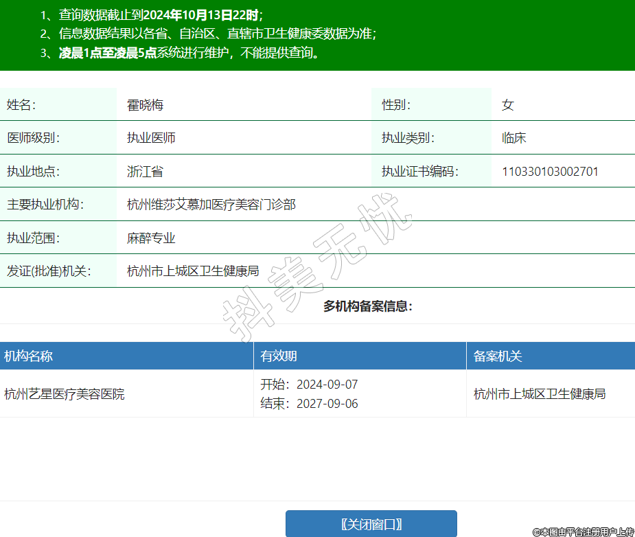 主要執(zhí)業(yè)機(jī)構(gòu):杭州維莎艾慕加醫(yī)療美容門診部