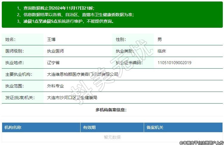 主要執(zhí)業(yè)機(jī)構(gòu):大連維恩柏顏醫(yī)療美容門診部有限公司