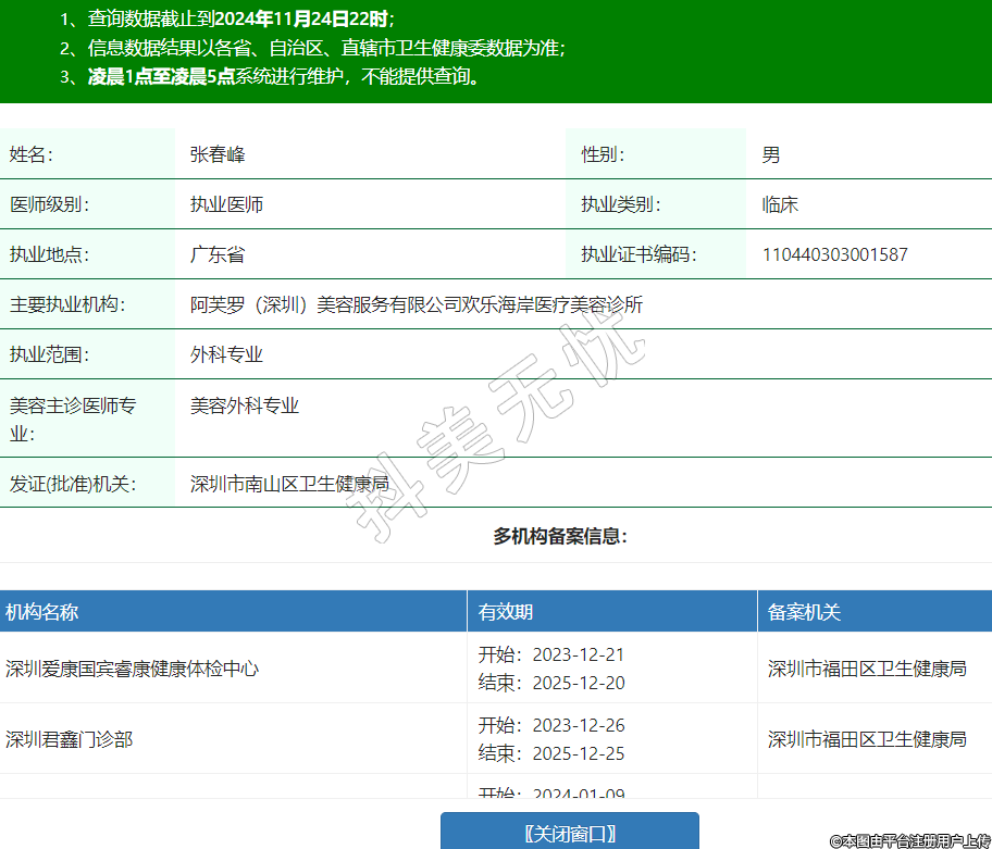 主要執(zhí)業(yè)機(jī)構(gòu):阿芙羅(深圳)美容服務(wù)有限公司歡樂海岸醫(yī)療美容診所