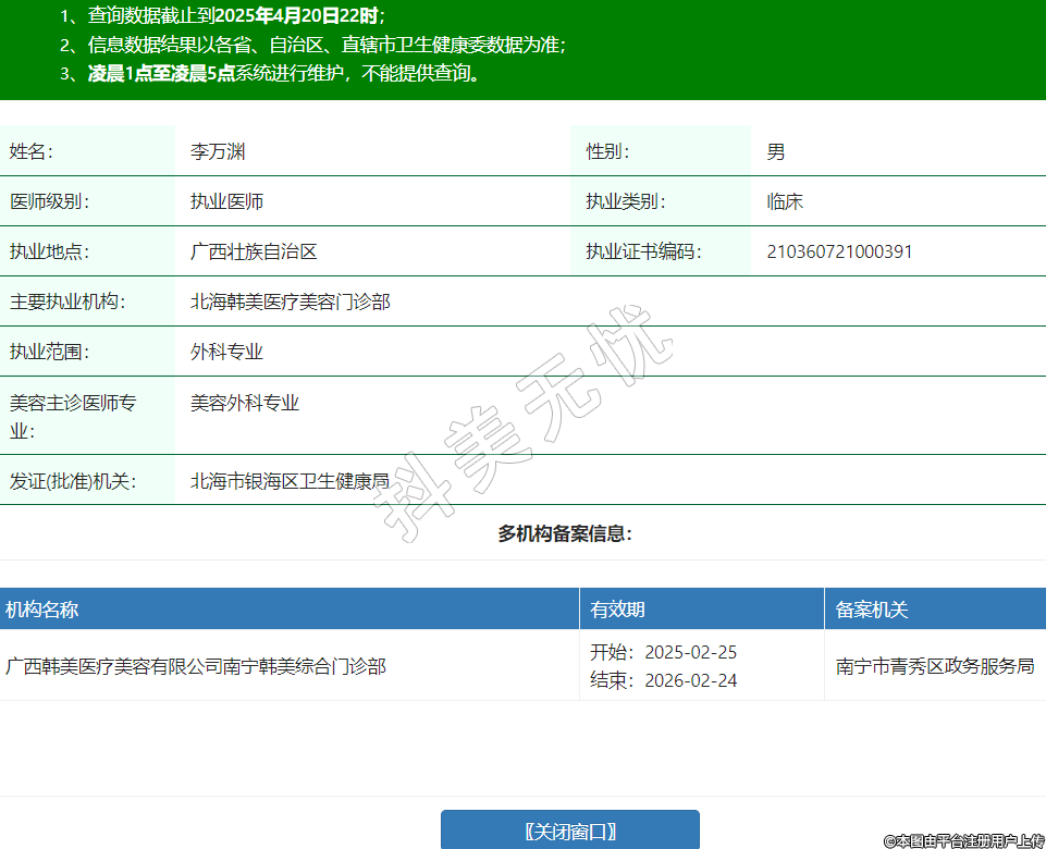 主要執(zhí)業(yè)機(jī)構(gòu):北海韓美醫(yī)療美容門診部