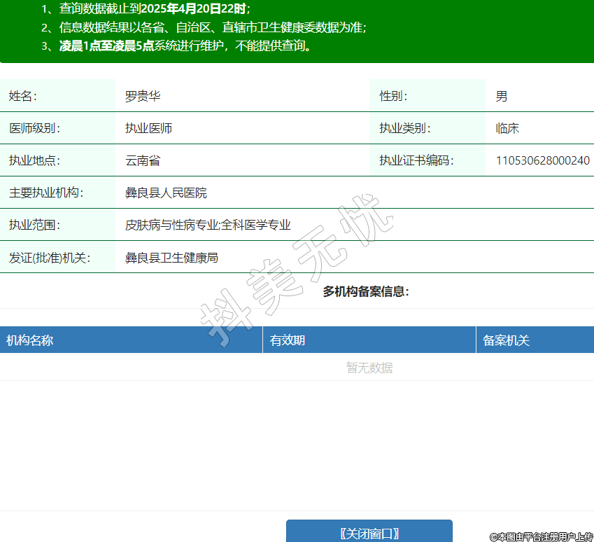 姓名:羅貴華性別:男醫(yī)師級別:執(zhí)業(yè)醫(yī)師執(zhí)業(yè)類別:臨床執(zhí)業(yè)地點(diǎn):云南省執(zhí)業(yè)證書編碼:110530628000240主要執(zhí)業(yè)機(jī)構(gòu):彝良縣人民醫(yī)院執(zhí)業(yè)范圍:皮膚病與性病專業(yè);全科醫(yī)學(xué)專業(yè)發(fā)證(批準(zhǔn))機(jī)關(guān):彝良縣衛(wèi)生健康局 -
