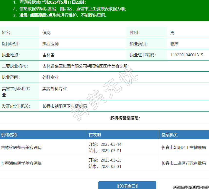 姓名:侯亮性別:男醫(yī)師級別:執(zhí)業(yè)醫(yī)師執(zhí)業(yè)類別:臨床執(zhí)業(yè)地點(diǎn):吉林省執(zhí)業(yè)證書編碼:110220104001315主要執(zhí)業(yè)機(jī)構(gòu):吉林省銘醫(yī)集團(tuán)有限公司朝陽銘醫(yī)醫(yī)療美容診所執(zhí)業(yè)范圍:外科專業(yè)美容主診醫(yī)師專業(yè):美容外科專業(yè)發(fā)證(批準(zhǔn))機(jī)關(guān):長春市朝陽區(qū)衛(wèi)生健康局多機(jī)構(gòu)備案信息:機(jī)構(gòu)名稱 有效期 備案機(jī)關(guān) 吉林銘醫(yī)整形美容醫(yī)院 開始:2025-03-14結(jié)束:2029-03-31長春市朝陽區(qū)衛(wèi)生健康局 長春海峽醫(yī)學(xué)美容醫(yī)院 開始:2025-03-25結(jié)束:2028-03-31長春市二道區(qū)行政審批局 -