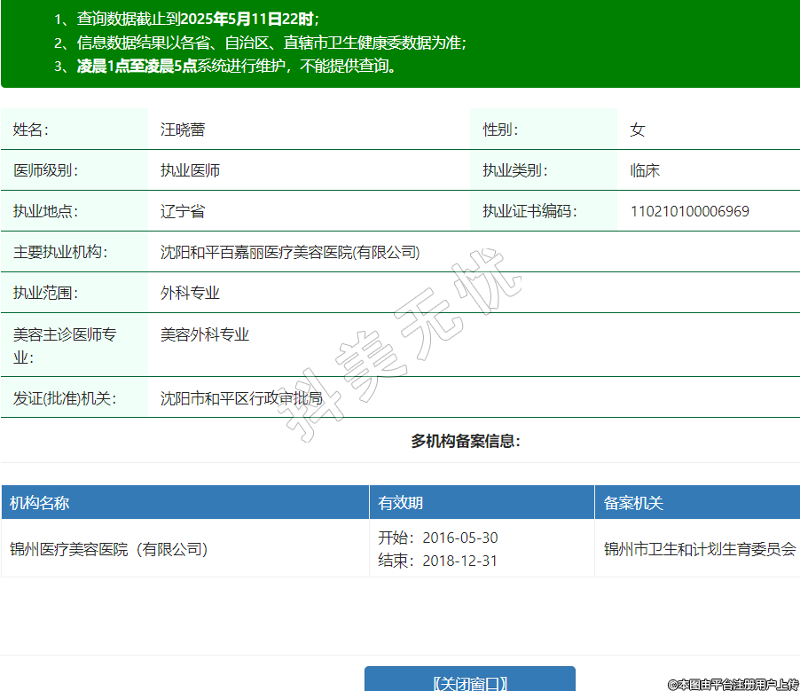 姓名:汪曉蕾性別:女醫(yī)師級別:執(zhí)業(yè)醫(yī)師執(zhí)業(yè)類別:臨床執(zhí)業(yè)地點:遼寧省執(zhí)業(yè)證書編碼:110210100006969主要執(zhí)業(yè)機構:沈陽和平百嘉麗醫(yī)療美容醫(yī)院(有限公司)執(zhí)業(yè)范圍:外科專業(yè)美容主診醫(yī)師專業(yè):美容外科專業(yè)發(fā)證(批準)機關:沈陽市和平區(qū)行政審批局多機構備案信息:機構名稱 有效期 備案機關 錦州醫(yī)療美容醫(yī)院(有限公司) 開始:2016-05-30結束:2018-12-31錦州市衛(wèi)生和計劃生育委員會 -