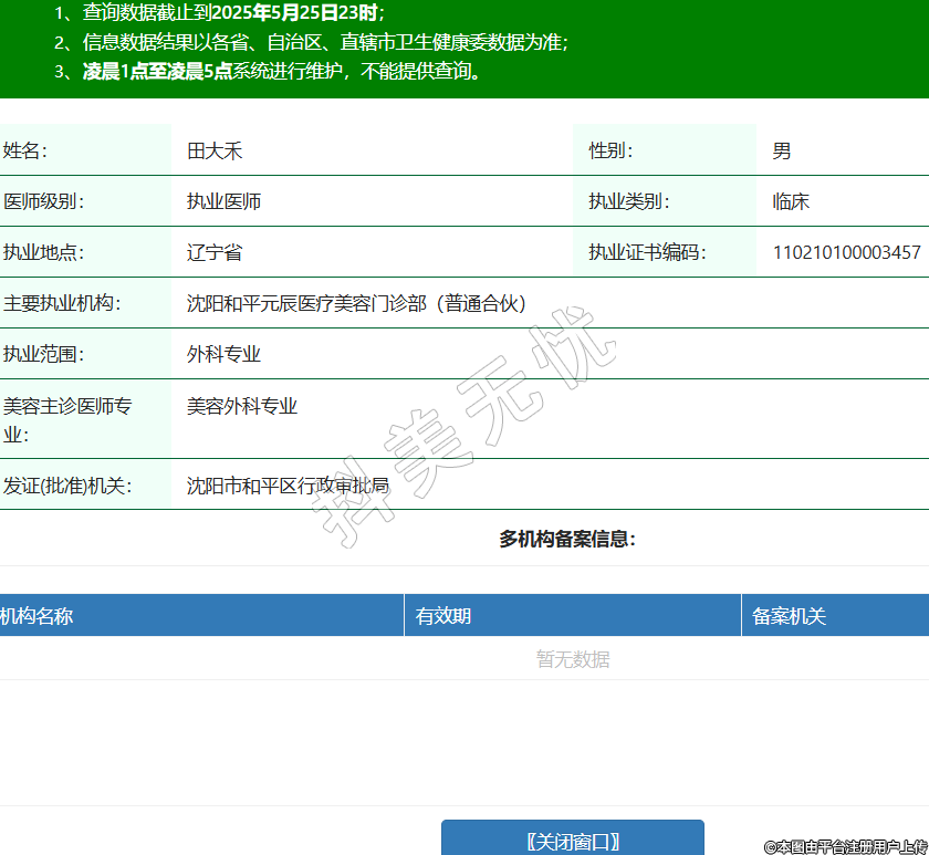 姓名:田大禾性別:男醫(yī)師級別:執(zhí)業(yè)醫(yī)師執(zhí)業(yè)類別:臨床執(zhí)業(yè)地點:遼寧省執(zhí)業(yè)證書編碼:110210100003457主要執(zhí)業(yè)機構(gòu):沈陽和平元辰醫(yī)療美容門診部(普通合伙)執(zhí)業(yè)范圍:外科專業(yè)美容主診醫(yī)師專業(yè):美容外科專業(yè)發(fā)證(批準(zhǔn))機關(guān):沈陽市和平區(qū)行政審批局 -