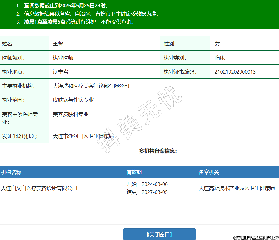 姓名:王馨性別:女醫(yī)師級(jí)別:執(zhí)業(yè)醫(yī)師執(zhí)業(yè)類別:臨床執(zhí)業(yè)地點(diǎn):遼寧省執(zhí)業(yè)證書編碼:210210202000013主要執(zhí)業(yè)機(jī)構(gòu):大連瑞和醫(yī)療美容門診部有限公司執(zhí)業(yè)范圍:皮膚病與性病專業(yè)美容主診醫(yī)師專業(yè):美容皮膚科專業(yè)發(fā)證(批準(zhǔn))機(jī)關(guān):大連市沙河口區(qū)衛(wèi)生健康局多機(jī)構(gòu)備案信息:機(jī)構(gòu)名稱 有效期 備案機(jī)關(guān) 大連白又白醫(yī)療美容診所有限公司 開始:2024-03-06結(jié)束:2027-03-05大連高新技術(shù)產(chǎn)業(yè)園區(qū)衛(wèi)生健康局 -
