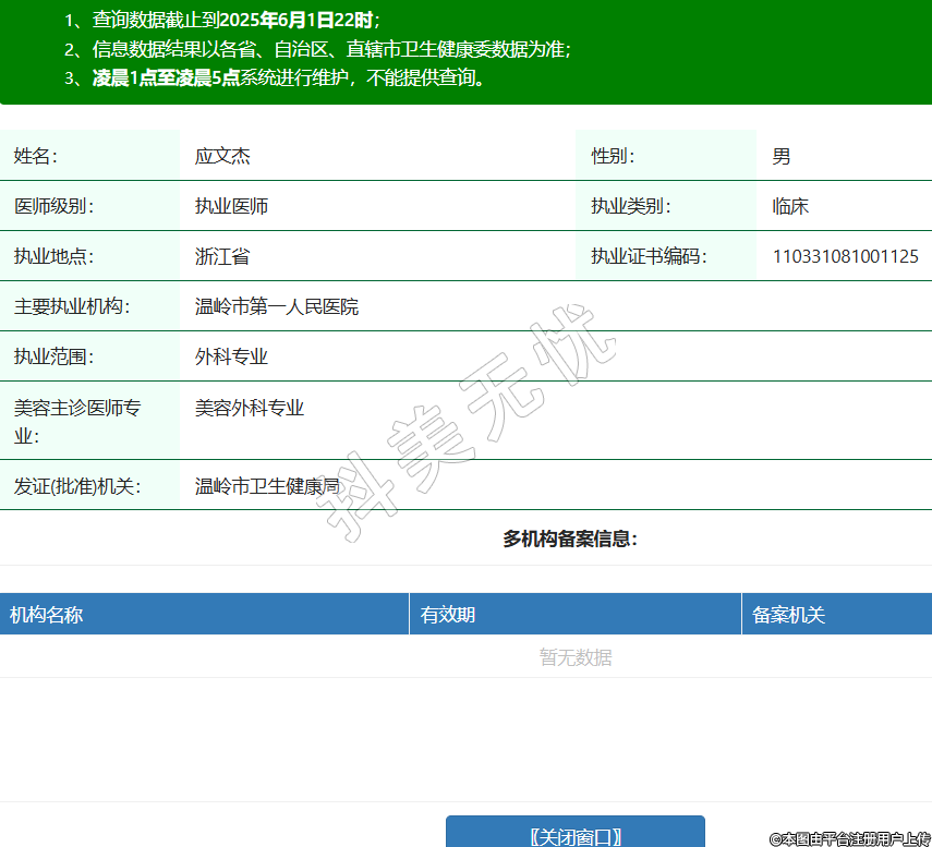姓名:應(yīng)文杰性別:男醫(yī)師級(jí)別:執(zhí)業(yè)醫(yī)師執(zhí)業(yè)類別:臨床執(zhí)業(yè)地點(diǎn):浙江省執(zhí)業(yè)證書編碼:110331081001125主要執(zhí)業(yè)機(jī)構(gòu):溫嶺市第一人民醫(yī)院執(zhí)業(yè)范圍:外科專業(yè)美容主診醫(yī)師專業(yè):美容外科專業(yè)發(fā)證(批準(zhǔn))機(jī)關(guān):溫嶺市衛(wèi)生健康局 -