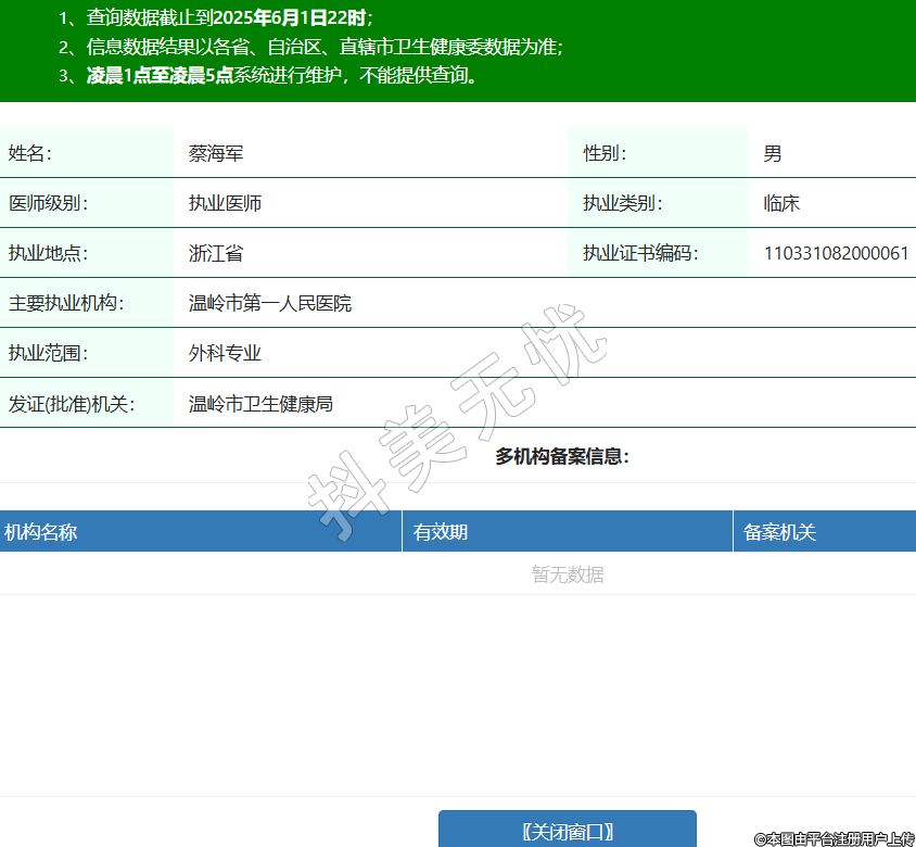 姓名:蔡海軍性別:男醫(yī)師級別:執(zhí)業(yè)醫(yī)師執(zhí)業(yè)類別:臨床執(zhí)業(yè)地點:浙江省執(zhí)業(yè)證書編碼:110331082000061主要執(zhí)業(yè)機構(gòu):溫嶺市第一人民醫(yī)院執(zhí)業(yè)范圍:外科專業(yè)發(fā)證(批準)機關(guān):溫嶺市衛(wèi)生健康局 -