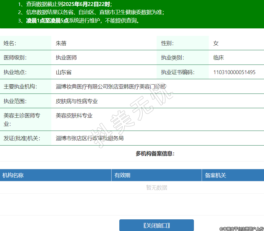 姓名:朱蓓性別:女醫(yī)師級(jí)別:執(zhí)業(yè)醫(yī)師執(zhí)業(yè)類別:臨床執(zhí)業(yè)地點(diǎn):山東省執(zhí)業(yè)證書(shū)編碼:110310000051495主要執(zhí)業(yè)機(jī)構(gòu):淄博妝典醫(yī)療有限公司張店亞韓醫(yī)療美容門診部執(zhí)業(yè)范圍:皮膚病與性病專業(yè)美容主診醫(yī)師專業(yè):美容皮膚科專業(yè)發(fā)證(批準(zhǔn))機(jī)關(guān):淄博市張店區(qū)行政審批服務(wù)局 -