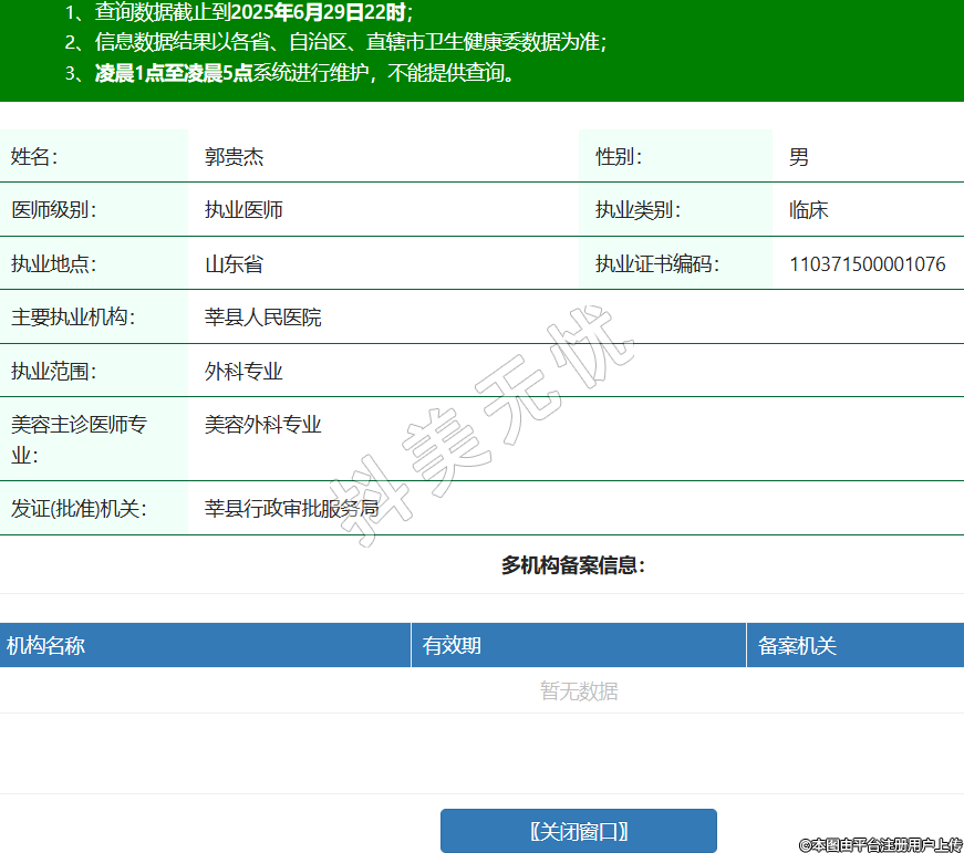 姓名:郭貴杰性別:男醫(yī)師級別:執(zhí)業(yè)醫(yī)師執(zhí)業(yè)類別:臨床執(zhí)業(yè)地點:山東省執(zhí)業(yè)證書編碼:110371500001076主要執(zhí)業(yè)機構(gòu):莘縣人民醫(yī)院執(zhí)業(yè)范圍:外科專業(yè)美容主診醫(yī)師專業(yè):美容外科專業(yè)發(fā)證(批準)機關(guān):莘縣行政審批服務局 -