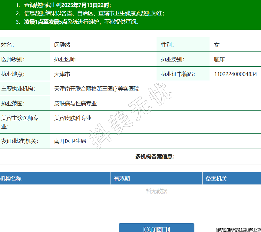 姓名:閔靜然性別:女醫(yī)師級別:執(zhí)業(yè)醫(yī)師執(zhí)業(yè)類別:臨床執(zhí)業(yè)地點:天津市執(zhí)業(yè)證書編碼:110222400004834主要執(zhí)業(yè)機構(gòu):天津南開聯(lián)合麗格第三醫(yī)療美容醫(yī)院執(zhí)業(yè)范圍:皮膚病與性病專業(yè)美容主診醫(yī)師專業(yè):美容皮膚科專業(yè)發(fā)證(批準(zhǔn))機關(guān):南開區(qū)衛(wèi)生局 -