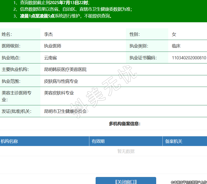 姓名:李杰性別:女醫(yī)師級別:執(zhí)業(yè)醫(yī)師執(zhí)業(yè)類別:臨床執(zhí)業(yè)地點(diǎn):云南省執(zhí)業(yè)證書編碼:110340202000810主要執(zhí)業(yè)機(jī)構(gòu):昆明韓辰醫(yī)療美容醫(yī)院執(zhí)業(yè)范圍:皮膚病與性病專業(yè)美容主診醫(yī)師專業(yè):美容皮膚科專業(yè)發(fā)證(批準(zhǔn))機(jī)關(guān):昆明市衛(wèi)生健康委員會 -