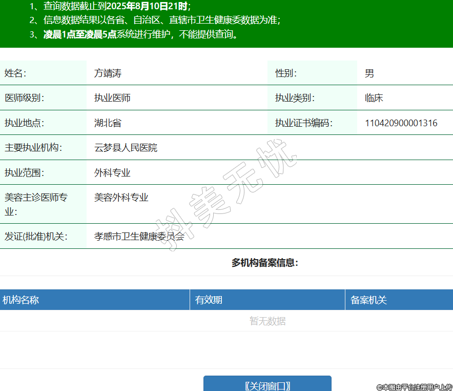 姓名:方靖濤性別:男醫(yī)師級別:執(zhí)業(yè)醫(yī)師執(zhí)業(yè)類別:臨床執(zhí)業(yè)地點:湖北省執(zhí)業(yè)證書編碼:110420900001316主要執(zhí)業(yè)機構:云夢縣人民醫(yī)院執(zhí)業(yè)范圍:外科專業(yè)美容主診醫(yī)師專業(yè):美容外科專業(yè)發(fā)證(批準)機關:孝感市衛(wèi)生健康委員會 -