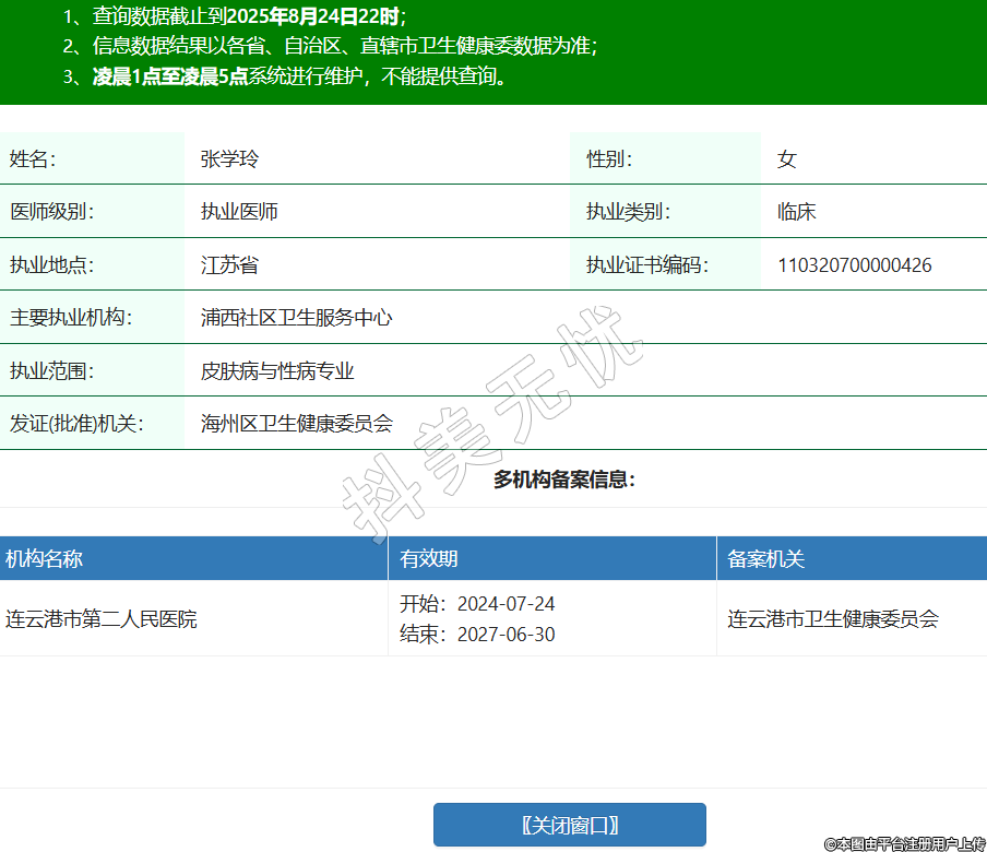 姓名:張學(xué)玲性別:女醫(yī)師級(jí)別:執(zhí)業(yè)醫(yī)師執(zhí)業(yè)類別:臨床執(zhí)業(yè)地點(diǎn):江蘇省執(zhí)業(yè)證書編碼:110320700000426主要執(zhí)業(yè)機(jī)構(gòu):浦西社區(qū)衛(wèi)生服務(wù)中心執(zhí)業(yè)范圍:皮膚病與性病專業(yè)發(fā)證(批準(zhǔn))機(jī)關(guān):海州區(qū)衛(wèi)生健康委員會(huì)多機(jī)構(gòu)備案信息:機(jī)構(gòu)名稱 有效期 備案機(jī)關(guān) 連云港市第二人民醫(yī)院 開始:2024-07-24結(jié)束:2027-06-30連云港市衛(wèi)生健康委員會(huì) -