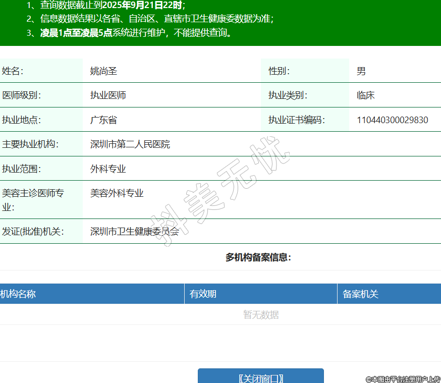 姓名:姚尚圣性別:男醫(yī)師級別:執(zhí)業(yè)醫(yī)師執(zhí)業(yè)類別:臨床執(zhí)業(yè)地點:廣東省執(zhí)業(yè)證書編碼:110440300029830主要執(zhí)業(yè)機(jī)構(gòu):深圳市第二人民醫(yī)院執(zhí)業(yè)范圍:外科專業(yè)美容主診醫(yī)師專業(yè):美容外科專業(yè)發(fā)證(批準(zhǔn))機(jī)關(guān):深圳市衛(wèi)生健康委員會 -