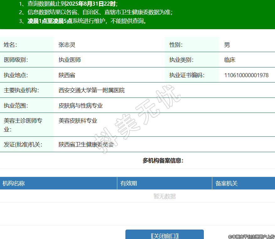 姓名:張志靈性別:男醫(yī)師級(jí)別:執(zhí)業(yè)醫(yī)師執(zhí)業(yè)類別:臨床執(zhí)業(yè)地點(diǎn):陜西省執(zhí)業(yè)證書編碼:110610000001978主要執(zhí)業(yè)機(jī)構(gòu):西安交通大學(xué)第一附屬醫(yī)院執(zhí)業(yè)范圍:皮膚病與性病專業(yè)美容主診醫(yī)師專業(yè):美容皮膚科專業(yè)發(fā)證(批準(zhǔn))機(jī)關(guān):陜西省衛(wèi)生健康委員會(huì) -