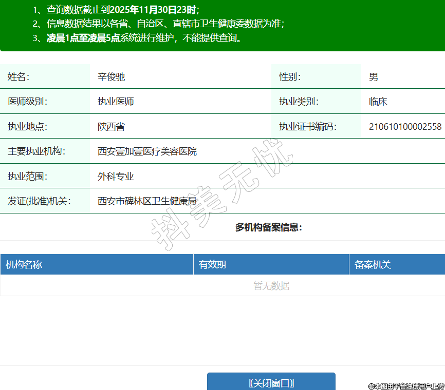 姓名:辛俊馳性別:男醫(yī)師級(jí)別:執(zhí)業(yè)醫(yī)師執(zhí)業(yè)類別:臨床執(zhí)業(yè)地點(diǎn):陜西省執(zhí)業(yè)證書編碼:210610100002558主要執(zhí)業(yè)機(jī)構(gòu):西安壹加壹醫(yī)療美容醫(yī)院執(zhí)業(yè)范圍:外科專業(yè)發(fā)證(批準(zhǔn))機(jī)關(guān):西安市碑林區(qū)衛(wèi)生健康局 -