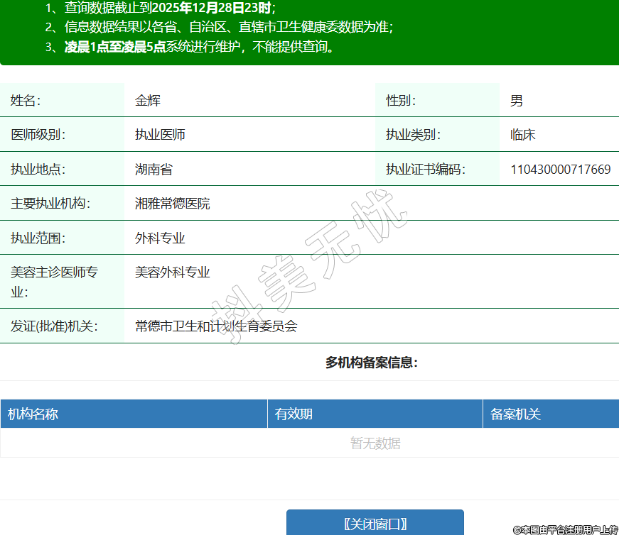 姓名:金輝性別:男醫(yī)師級別:執(zhí)業(yè)醫(yī)師執(zhí)業(yè)類別:臨床執(zhí)業(yè)地點(diǎn):湖南省執(zhí)業(yè)證書編碼:110430000717669主要執(zhí)業(yè)機(jī)構(gòu):湘雅常德醫(yī)院執(zhí)業(yè)范圍:外科專業(yè)美容主診醫(yī)師專業(yè):美容外科專業(yè)發(fā)證(批準(zhǔn))機(jī)關(guān):常德市衛(wèi)生和計(jì)劃生育委員會(huì) -
