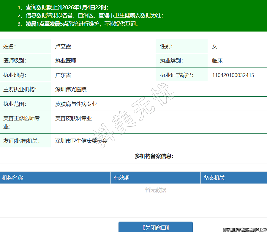 姓名:盧立霞性別:女醫(yī)師級別:執(zhí)業(yè)醫(yī)師執(zhí)業(yè)類別:臨床執(zhí)業(yè)地點:廣東省執(zhí)業(yè)證書編碼:110420100032415主要執(zhí)業(yè)機構:深圳偉光醫(yī)院執(zhí)業(yè)范圍:皮膚病與性病專業(yè)美容主診醫(yī)師專業(yè):美容皮膚科專業(yè) -