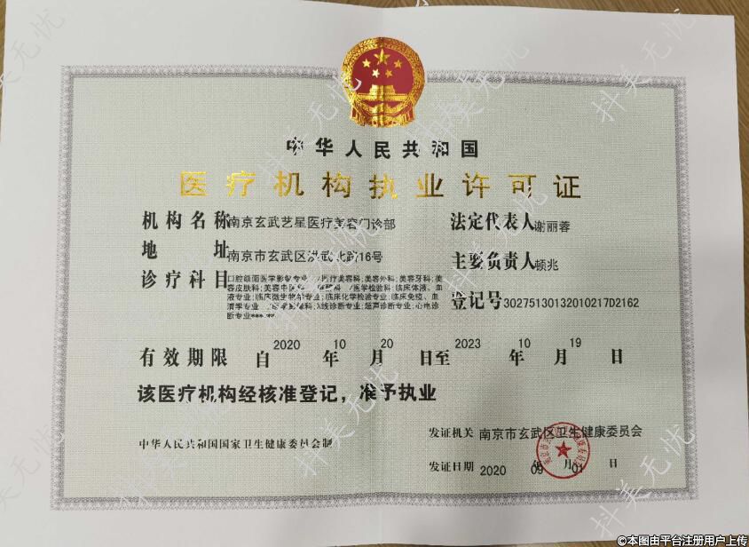 發(fā)證機關:南京市玄武區(qū)衛(wèi)生健康委員會
