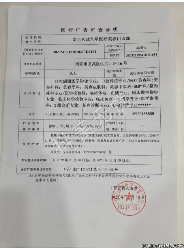 機構(gòu)名稱:南京玄武藝星醫(yī)療美容門診部