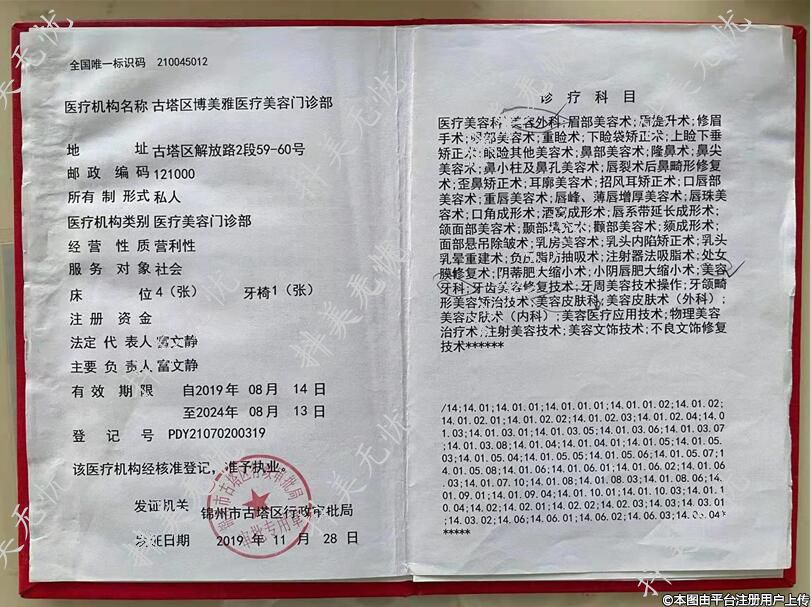 醫(yī)療機(jī)構(gòu)名稱:古塔區(qū)博美雅醫(yī)療美容門診部