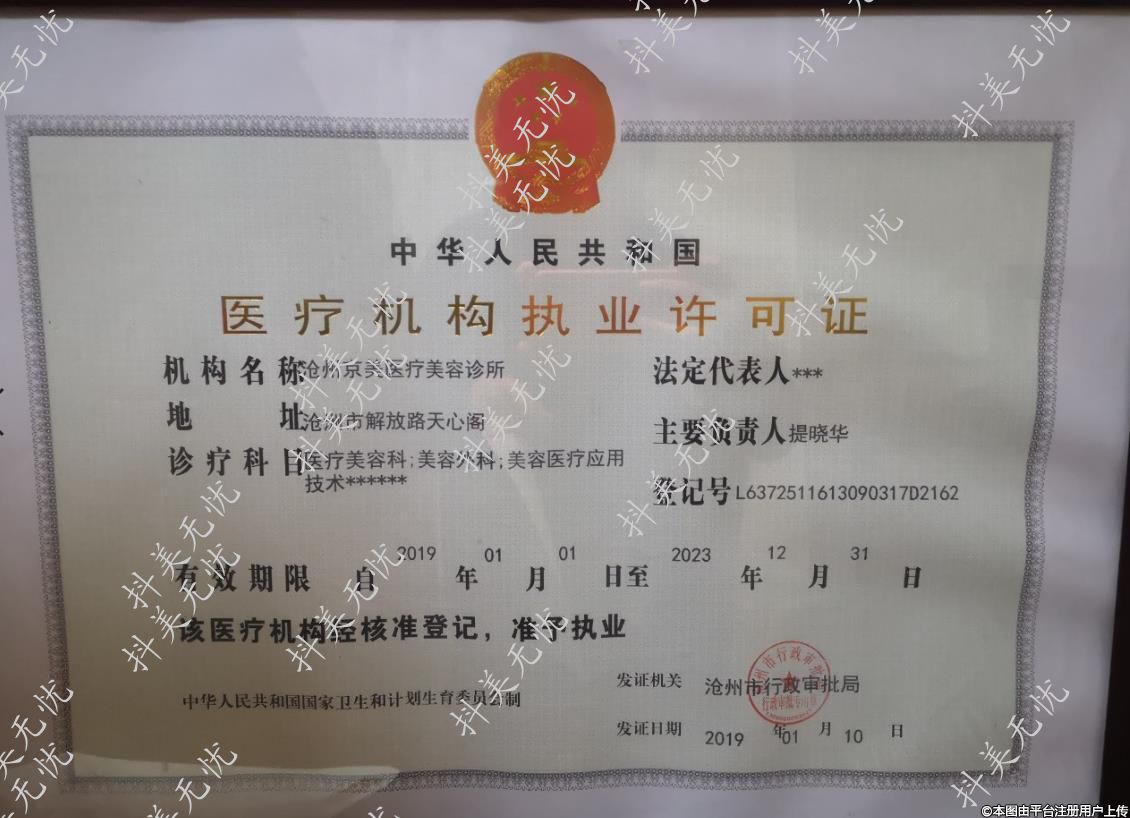 機構(gòu)名稱:滄州京美醫(yī)療美容診所