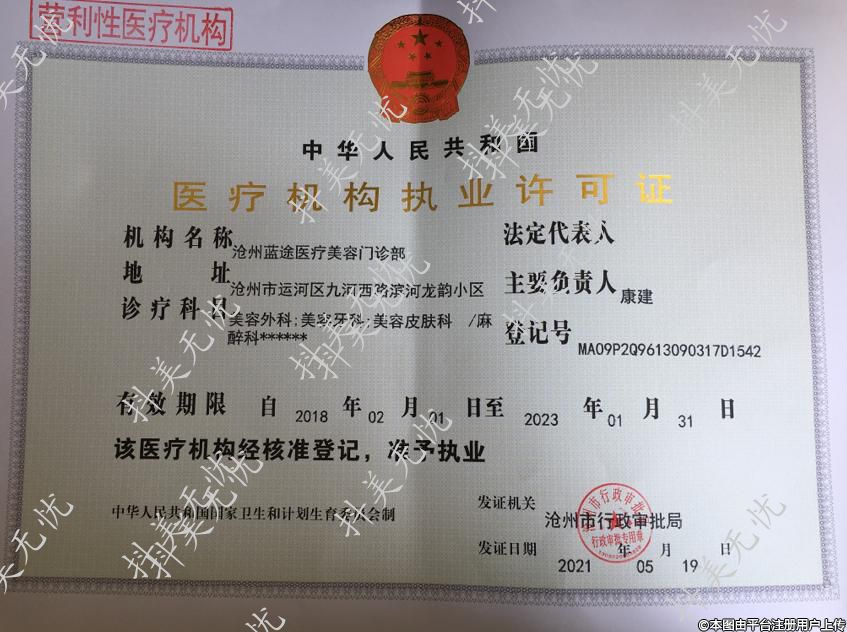 機構名稱:滄州藍途醫(yī)療美容門診部
