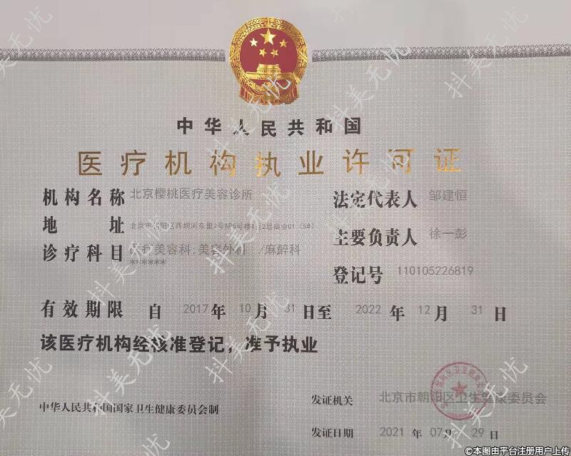 發(fā)證機關(guān):北京市朝陽區(qū)衛(wèi)生健康委員會