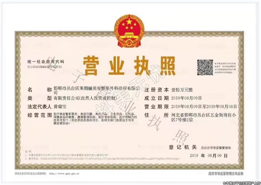 發(fā)證機關:邯鄲市叢臺區(qū)行政審批局