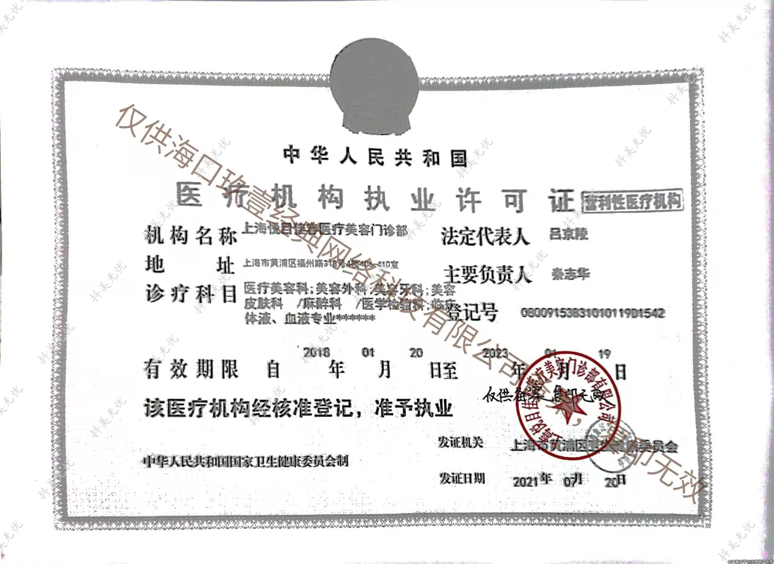 發(fā)證機(jī)關(guān):上海市黃浦區(qū)衛(wèi)生健康委員會(huì)