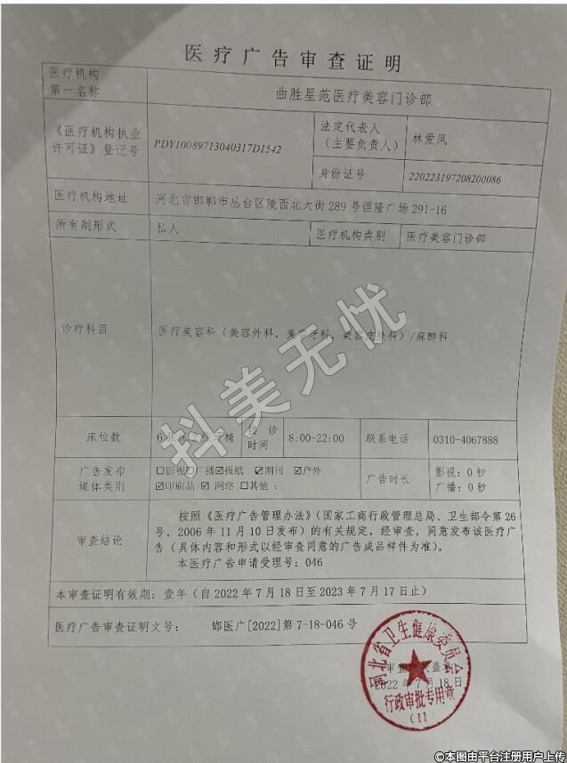 機(jī)構(gòu)名稱:曲勝星范醫(yī)療美容門診部
