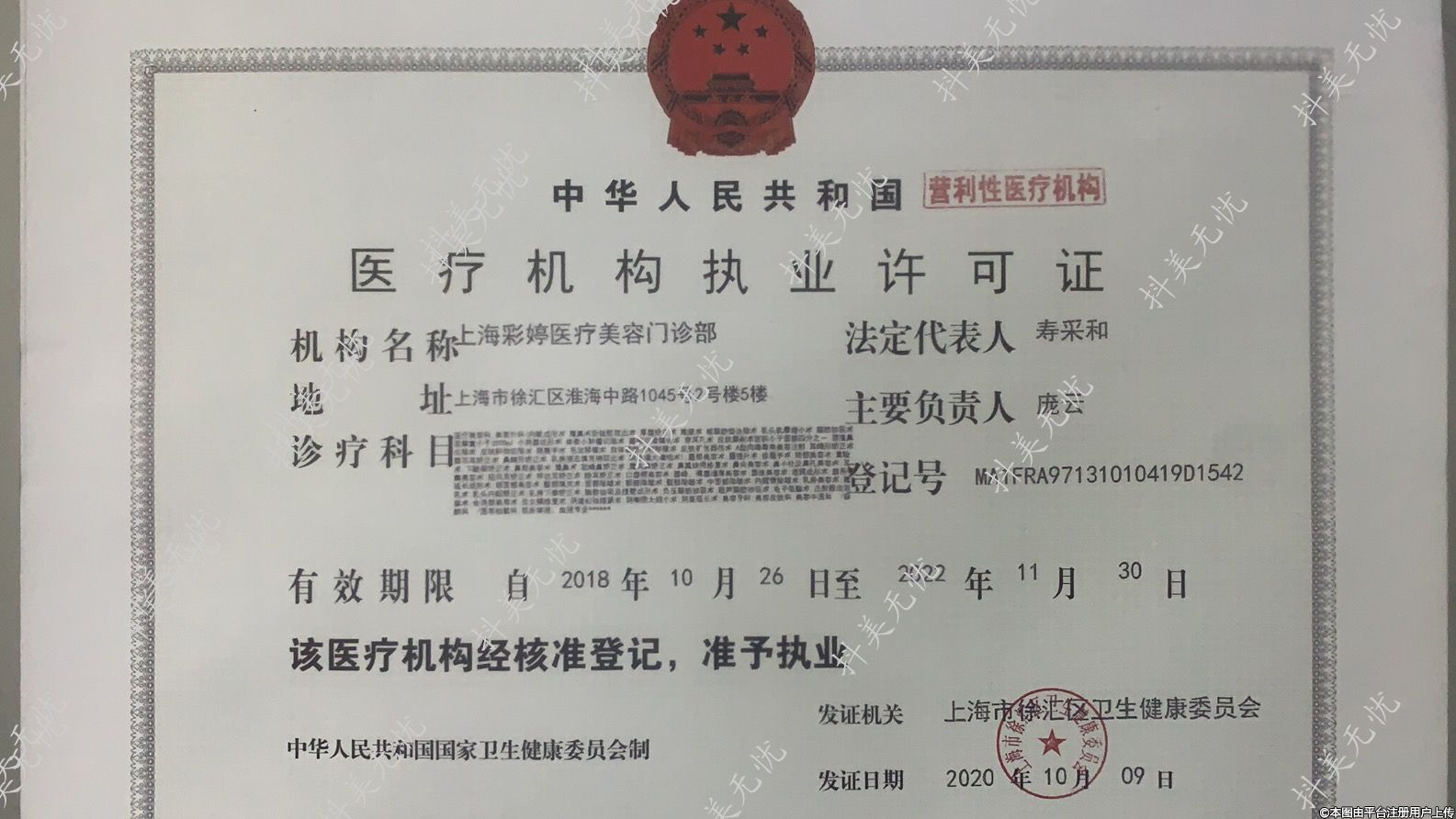 發(fā)證機關(guān):上海市徐匯區(qū)衛(wèi)生健康委員會