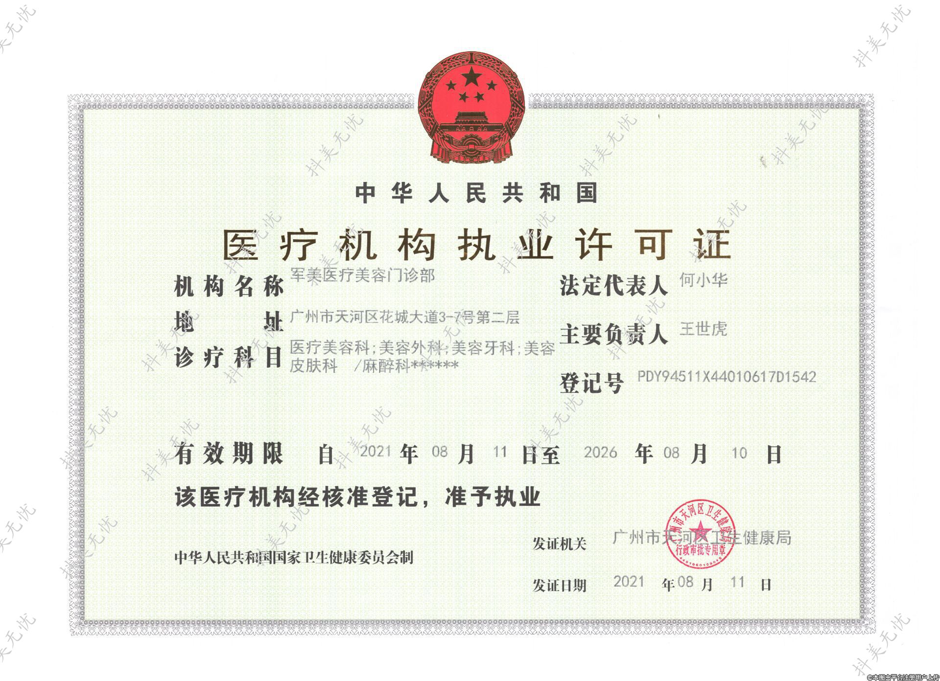 發(fā)證機關(guān):廣州市天河區(qū)衛(wèi)生健康局