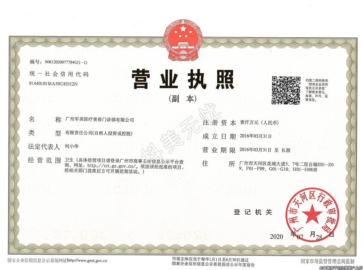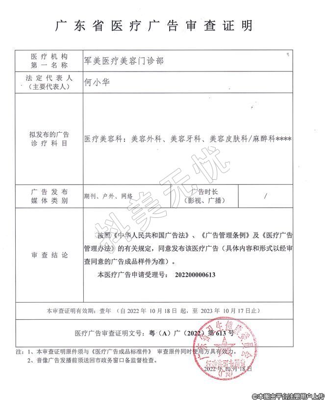 機構(gòu)名稱:軍美醫(yī)療美容門診部