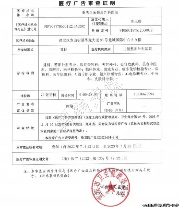 醫(yī)療機構(gòu)名稱:重慶星榮整形外科醫(yī)院