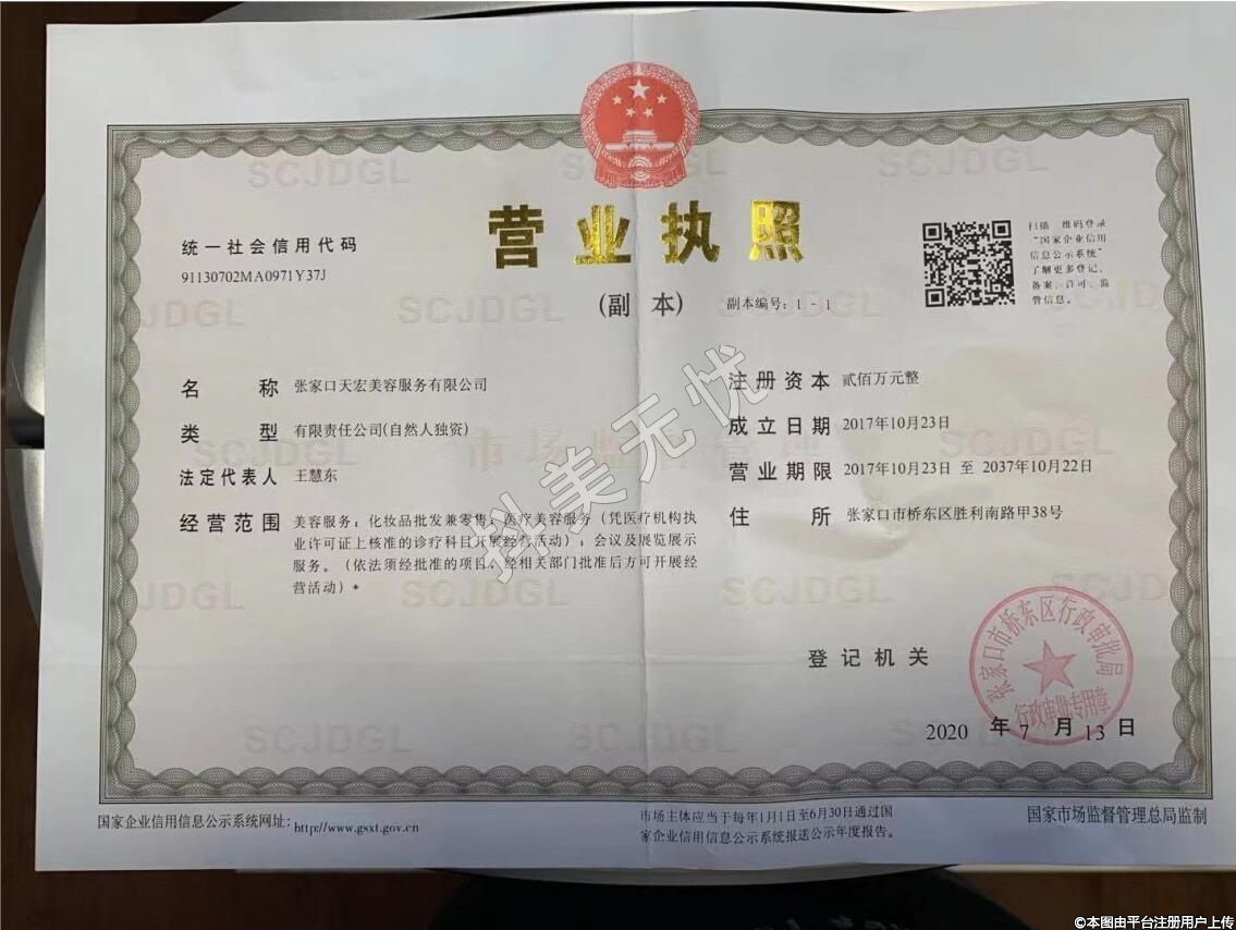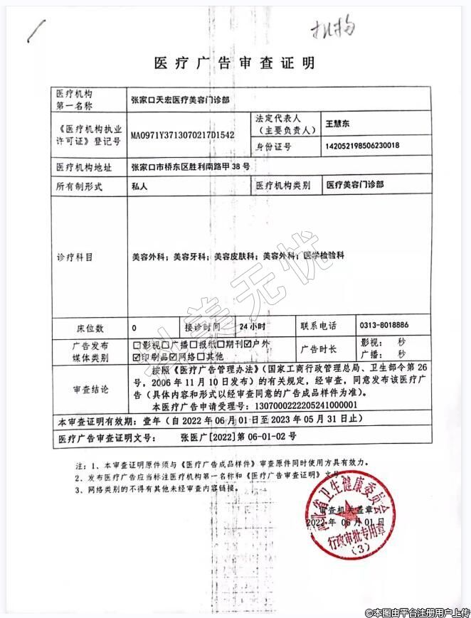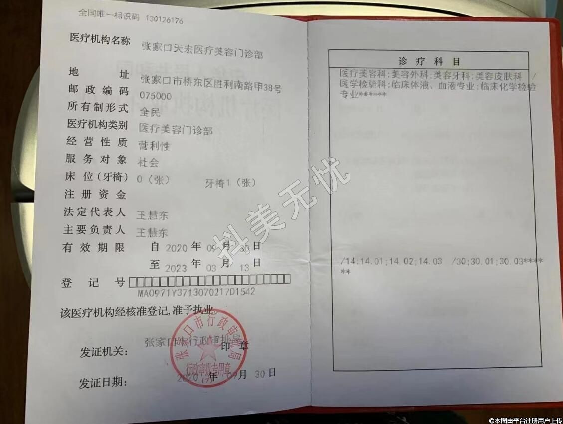 醫(yī)療機(jī)構(gòu)名稱:張家口天宏醫(yī)療美容門診部