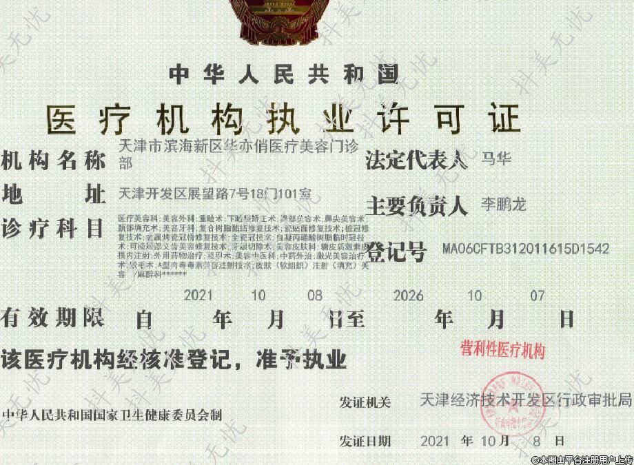 機構(gòu)名稱:天津市濱海新區(qū)華亦俏醫(yī)療美容門診部