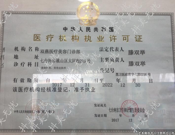機構(gòu)名稱:雙燕醫(yī)療美容門診部