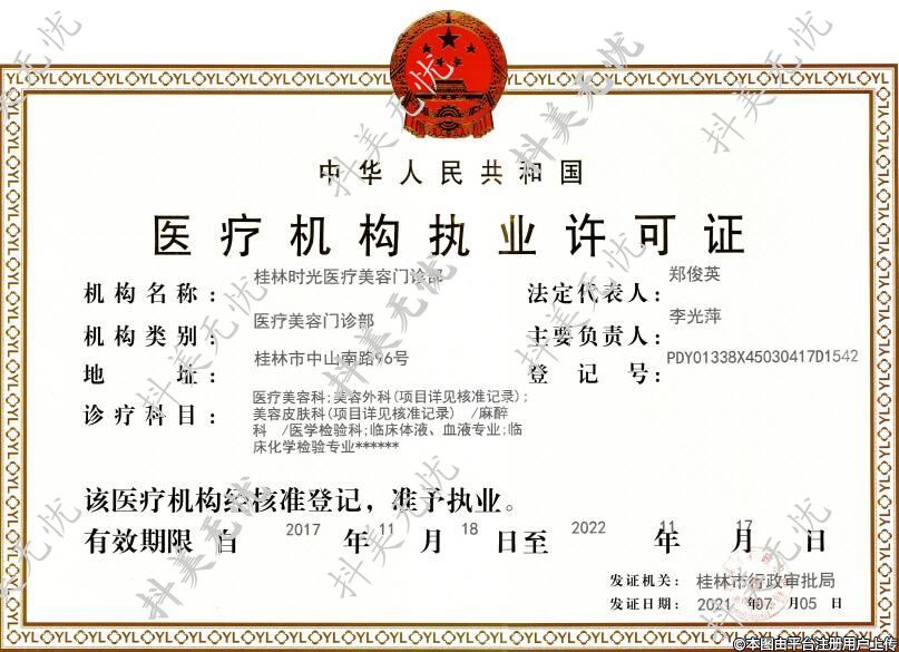 機構(gòu)名稱:桂林時光醫(yī)療美容門診部