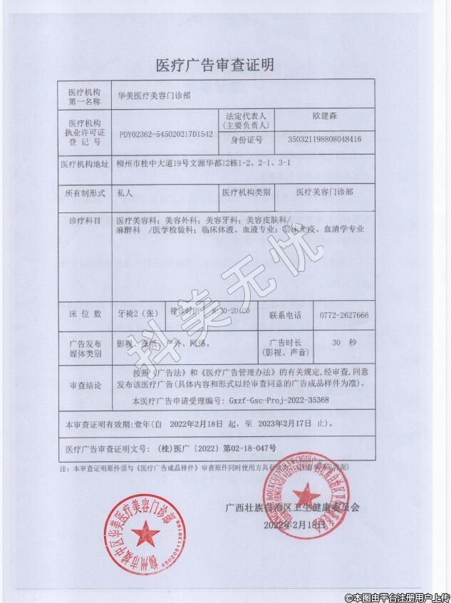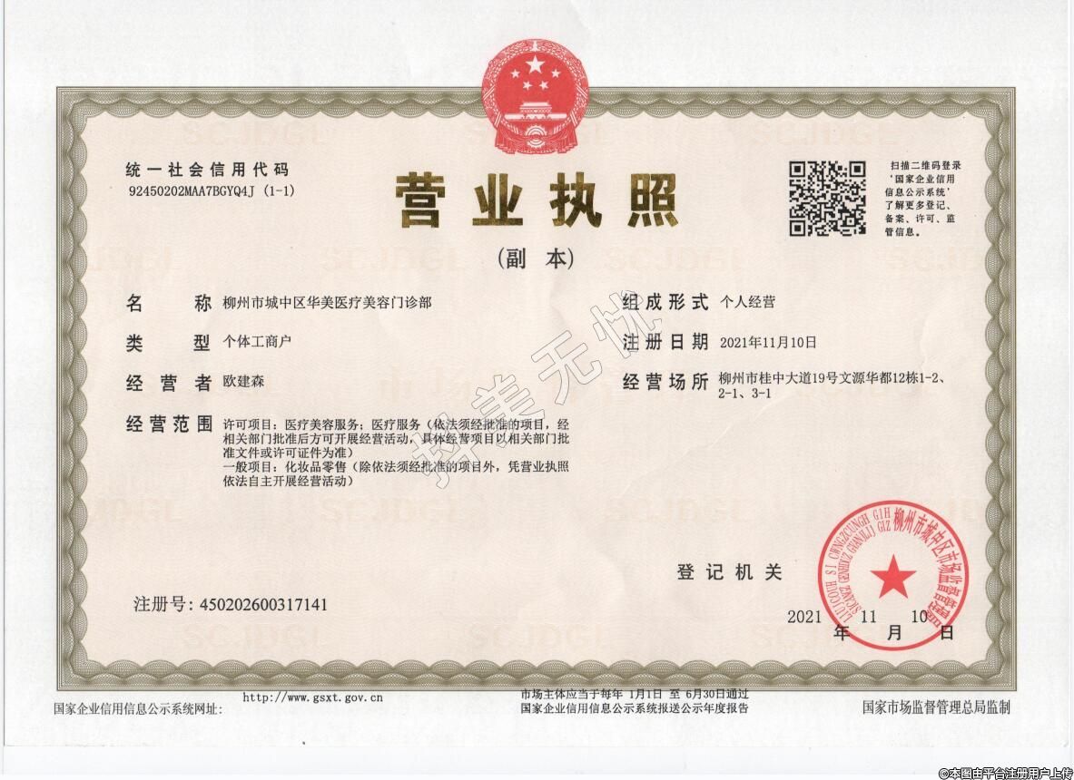 醫(yī)療機(jī)構(gòu)名稱:柳州華美醫(yī)療美容門(mén)診部