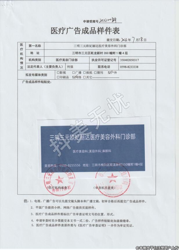 機(jī)構(gòu)名稱:三明三元?dú)W妃麗達(dá)醫(yī)療美容外科門診部