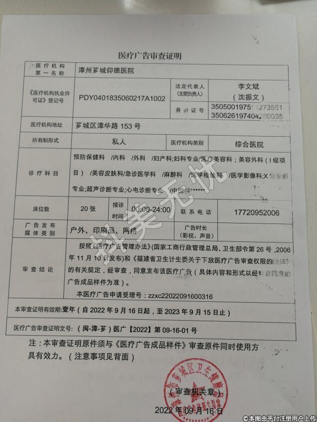診療科目:醫(yī)療美容科;美容外科(1級(jí)、Ⅱ級(jí)手術(shù))美容牙科;美容皮膚科;美容中醫(yī)科/醫(yī)學(xué)檢驗(yàn)科******