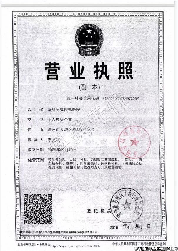 發(fā)證機(jī)關(guān):漳州市薌城區(qū)衛(wèi)生健康局